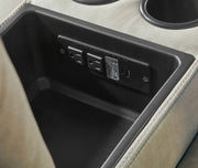 - Console with power center and cup holders