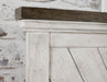 A rustic, farmhouse-inspired bed, Bear Creek features a white-smoke finish that contrasts beautifully with honey-smoke stained tops and cap rails. The chevron patterned headboard and footboard is offered in King and Queen sizes and the bedroom collection offers a variety of storage items with ultra-deep drawers supported by side drawer glides for easy operation.