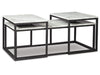living, this set slides together when space is at a premium and apart again when company comes. The faux Carrara marble adds a chic, sophisticated look to this very minimalist small space solution.
